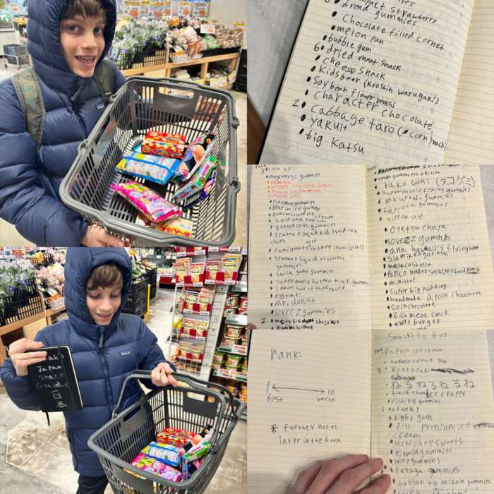 He was a young boy who absolutely loves Japanese food — especially Japanese sweets. With shining eyes, he showed me a notebook filled from cover to cover with the names of Japanese snacks and desserts. Before coming to Japan, he had carefully researched them all and written them down himself, preparing for this trip with incredible dedication.