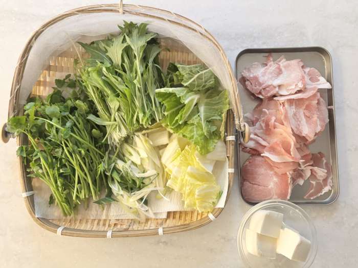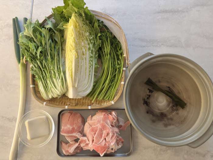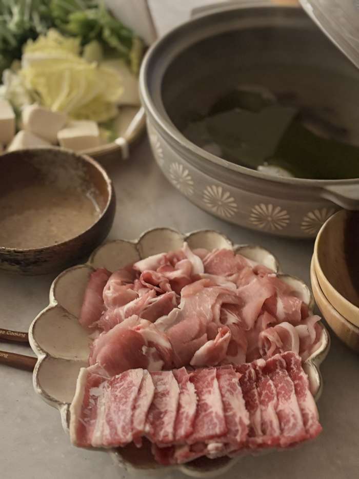 Thinly sliced meat (pork loin or beef for shabu-shabu): 300–400 g