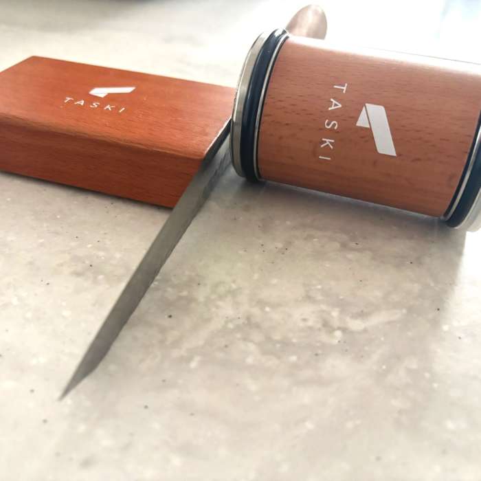 It’s a simple tool that sharpens your knife just by rolling it.